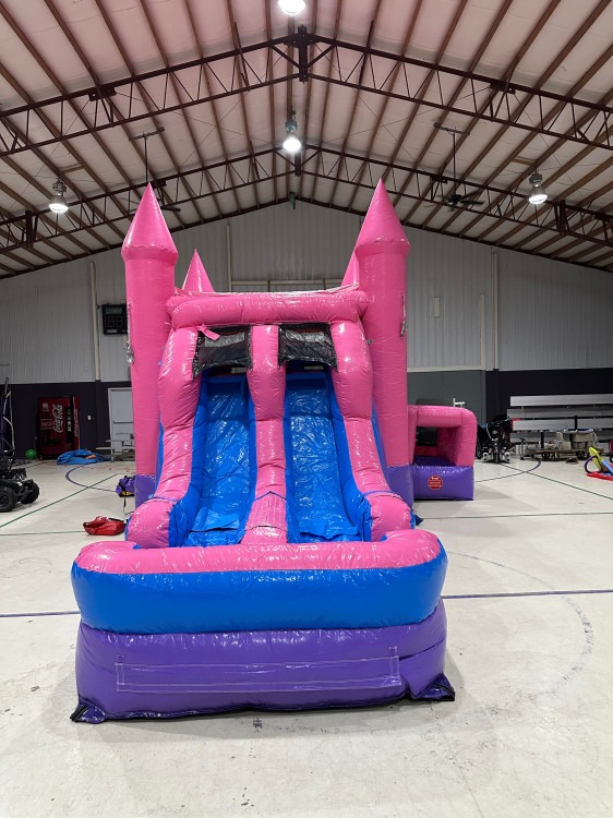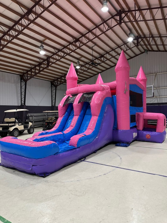 Step into a world of royal fun with the Princess Double Lane Combo! Designed for both wet and dry use, this vibrant pink, purple, and blue inflatable is perfect for birthdays, school events, and community celebrations. With dual slides, a spacious bounce area, and a built-in basketball hoop, the fun never stops. Whether it’s a sunny summer day or a cool fall afternoon, this magical combo brings excitement to every event. Also, we can add our Bouncer Integrated Game System (B.I.G.S.) Panels to the inflatable to make the party event more fun!
